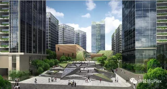 侨城坊q_plex最大化提取绿色能量,实现园区的绿色升级,以连续的景观绿化轴贯穿园区;垂直绿化由内到外,每栋楼顶设置空中花园,享受自然带来的惬意舒适;将绿色编织成建筑纹理。特别打造全明走廊,俯瞰多维绿景,创意与生产力自由迸发;