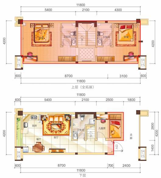 基于上述来看龙城雅郡供应给深圳青年人士的产品——55平复式三房,层高约5.9米,1+1>2双层灵便空间,上层休闲,下层生活,空间极舒适,完全可以实现三代同堂的生活逸趣。