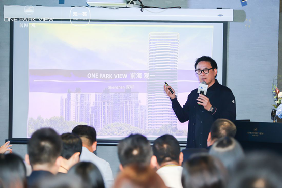 国际著名建筑、室内及产品设计师、梁志天设计集团有限公司创始人梁志天先生发言主题为:《大湾区的高雅生活》。通过建筑设计与生活方式,围绕前海·观一的670㎡户型理念设计,用颠覆式的语言告诉大家,这并不是一个简单的居住地项目,而是提倡一种生活方式的地方,让所有人,都能在这里找到家的温馨。