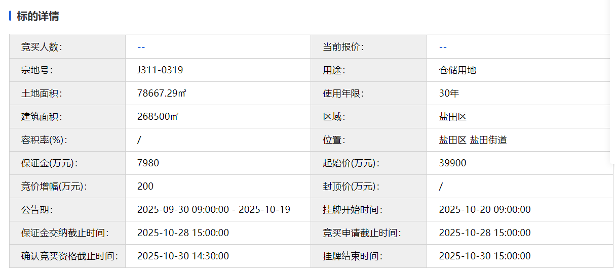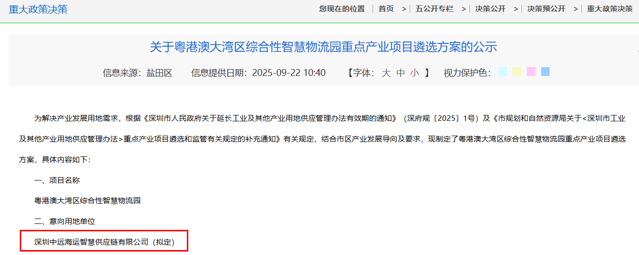 盐田3.99亿挂牌1宗仓储用地,定向出让中远海运