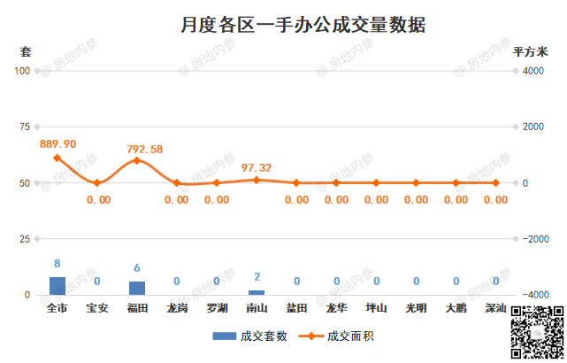 ③办公,成交8套,环比↓42.86%;成交面积889.9㎡,环比↓54.48%;