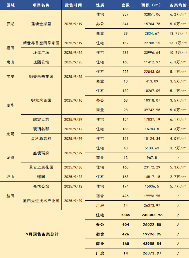 2025年9月,深圳全市一二手商品房成交简要: