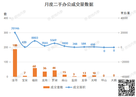 二手房办公成交方面,全市成交188套,成交量前三区域分别是: