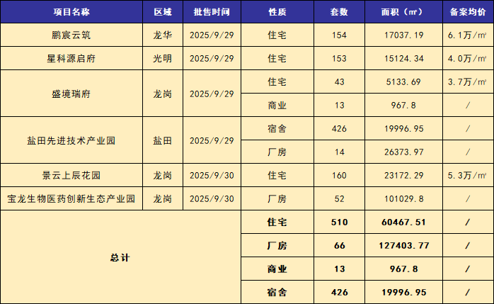 2025年40期(09月29日~10月05日),深圳全市一二手商品房成交简要: