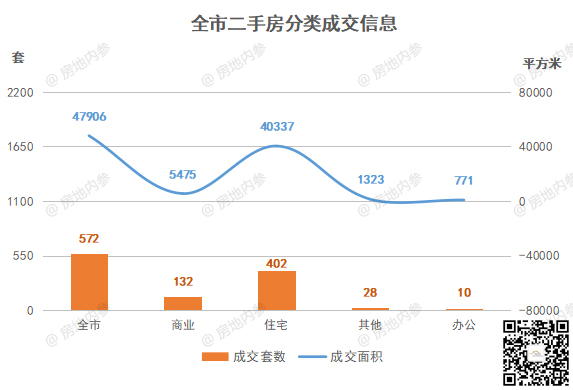 ♢总成交量:二手房成交572套,环比↓51.11%,其中住宅成交402套,环比↓58.39%