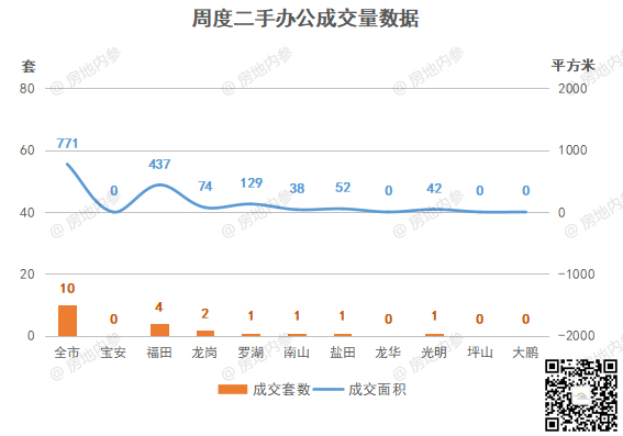 二手房办公成交方面,全市成交10套,成交量前三区域分别是: