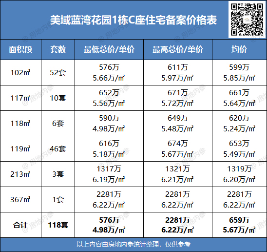 美域蓝湾花园1栋C座住宅开盘备案价格表