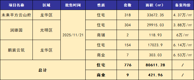 本周共3个项目获批预售,其中住宅批售共776套,面积约8.0万平米。