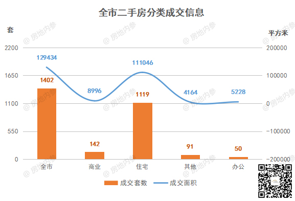 ♢总成交量:二手房成交1402套,环比↓4.82%,其中住宅成交1119套,环比↓6.83%