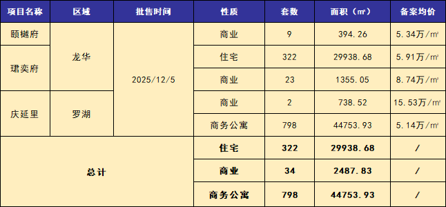 2025年47期(12月01日~12月07日),深圳全市一二手商品房成交简要:
