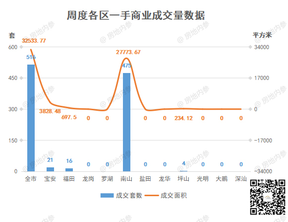 ②宝安区、光明区,各成交1套,各成交面积4000.19㎡、1532.5㎡;