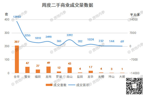 ②商业,成交12套,环比↑33.33%;成交面积661.56㎡,环比↓44.98%;