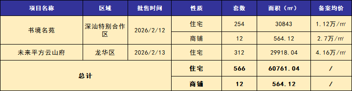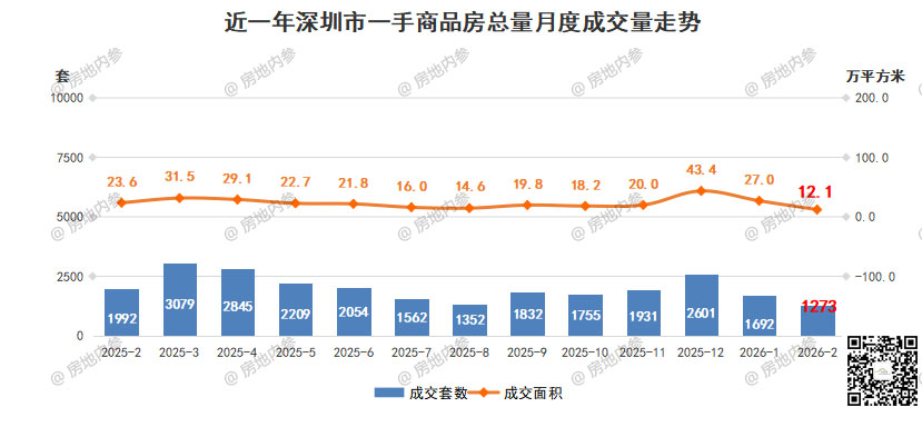 2026年2月,深圳全市一二手商品房成交简要: