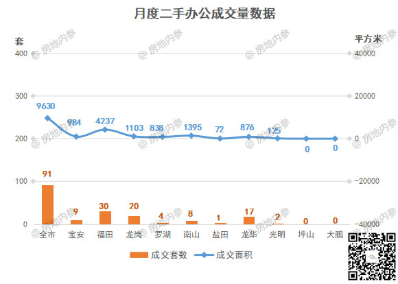 二手房办公成交方面,全市成交91套,成交量前三区域分别是: