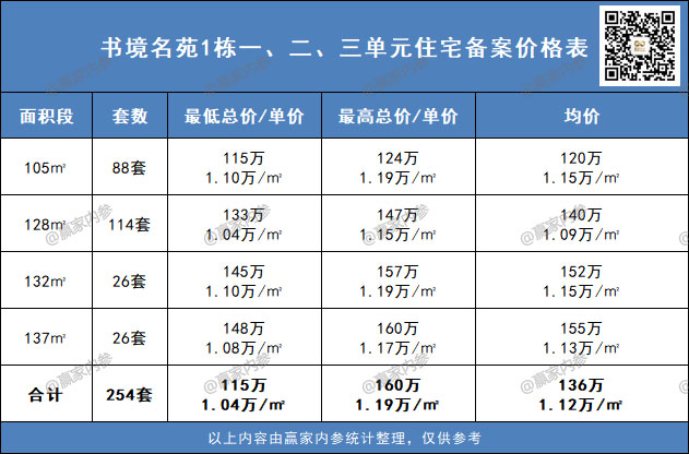 ♦备案产品:254套住宅,户型建面约105-137㎡,备案均价1.12万/㎡