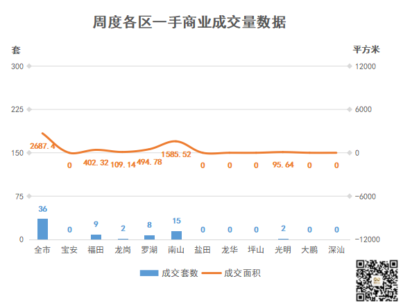 ②商业,成交36套,环比↓14.29%;成交面积2687.4㎡,环比↑36.23%;
