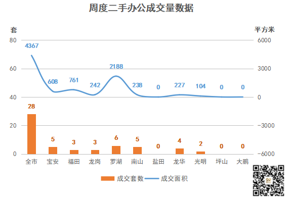 ■各区办公仅福田区成交11套,成交面积1274.01㎡