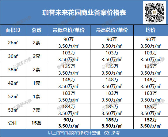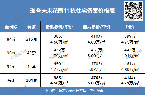 宝安区珈誉未来花园11栋住宅、商业开盘备案价格表