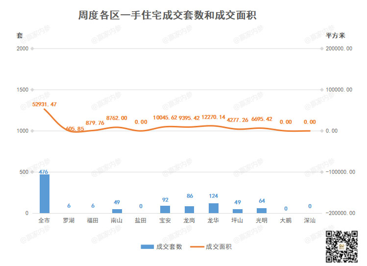 ♢区域成交排名:①龙岗区438套;②罗湖区305套;③龙华区302套