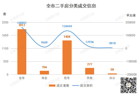 ♢总成交量:二手房成交1917套,环比↑12.90%,其中住宅成交1434套,环比↑14.35%