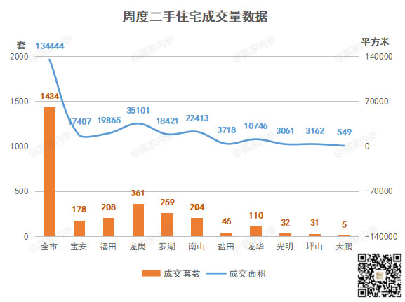 根据@房地内参 监测,上周深圳全市二手房成交1917套,环比↑12.90%,成交面积约160857㎡,环比↑10.18%,其中住宅成交1434套,环比↑14.35%,住宅成交面积约134444㎡,环比↑8.90%。