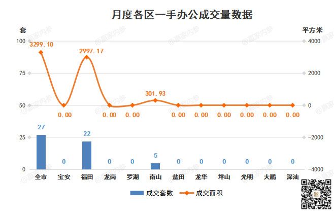 ①福田区,成交22套,成交面积2997.17㎡;