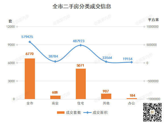 ♢总成交量:二手房成交6770套,环比↑123.80%,其中住宅成交5071套,环比↑116.80%