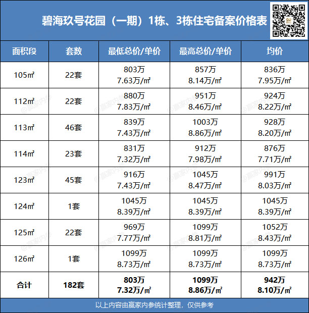 ♦备案产品:182套住宅,户型建面约105-126㎡,备案均价8.10万/㎡