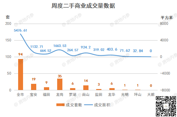 二手房商业成交方面,全市成交94套,成交量前三区域分别是: