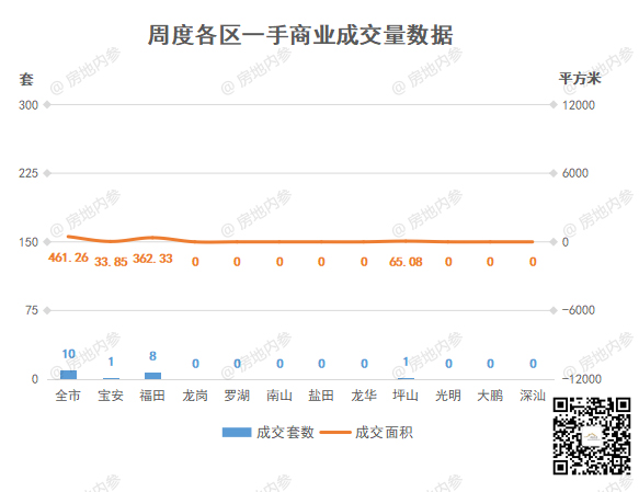 ②商业,成交10套,环比↓47.37%;成交面积461.26㎡,环比↓57.12%;