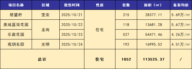 2025年41期(10月20日~10月26日),深圳全市一二手商品房成交简要: