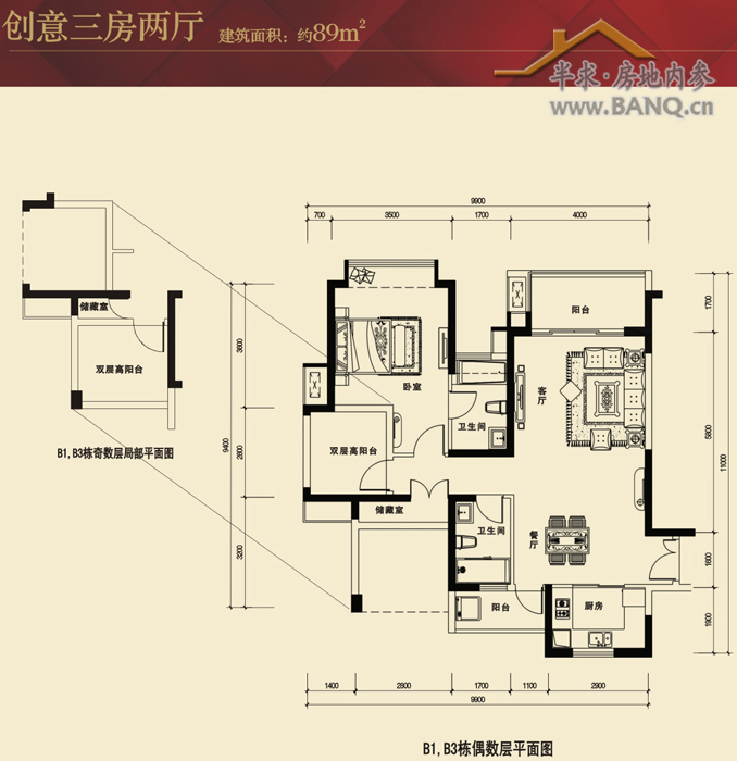 星河·时代高层户型方面,其极为临近星河·时代红飘带会所的B1、B2、B3三栋高层,其户型建筑面积约89平方米。乍一看户型图,或许很多人都可以发现,客厅餐厅连体等宽相连、方正实用,而且客厅十分阔绰宽达4米,加上自带的景观阳台、双阳台,园林内外的湖景园景直接入室。