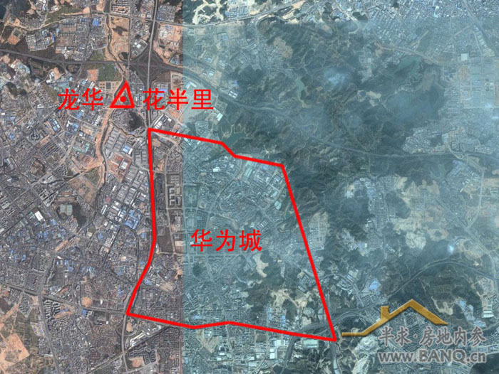 2011年,华为迎来了一个新邻居:龙华·花半里。经测量,龙华·花半里距离华为科研中心的直线距离约为1500米,区域内接近华为距离第二的新盘(金色半山)在华为东南方2800米左右,因而花半里整整比第二名近了1300米,幅度达到46%,有着绝对的优势。换言之,龙华·花半里是最近华为的新盘,该项目位于龙华大合路和华清大道的交汇处,毗邻港铁四号线首站清湖站。