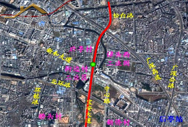 1、车站位于宝安大道与沙井大外环路交叉口北侧,所处沙井街道,车站位于后亭片区与谭头片区之间,且车站西侧为后亭村,因此推荐站名后亭站。