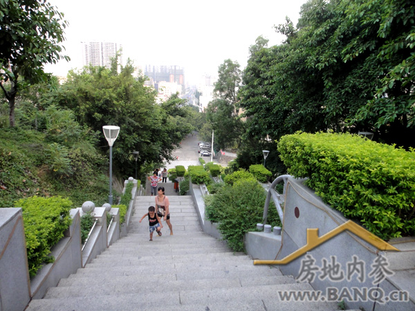 项目西北面坐落着西乡最大的公园——碧海湾公园,碧海湾公园是一座环山公园,主体部分是2座150多米、一大一小的山体,山脚下镌刻“碧海湾公园”的碑石迎风而立。顺着登山道拾级而上,半山处草木林立,鸟雀争鸣,古树下的木制圆椅、圆桌与景色融为一体,好不惬意。