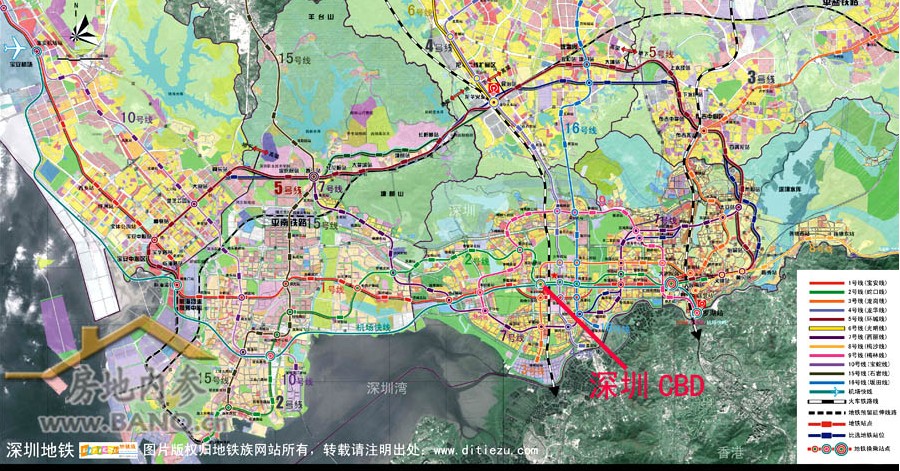 根据现已开通或规划在建中的地铁,深圳中心区汇集的轨道线达7条之多,包括1、2、3、4、16号地铁、机场快线及广深港高速铁路。这是整个深圳区内交通网络最密集、地铁覆盖密集度最大的区域。
