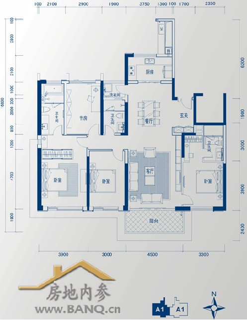 J1170㎡悦禧大宅四房两厅三卫、建筑面积:约170㎡