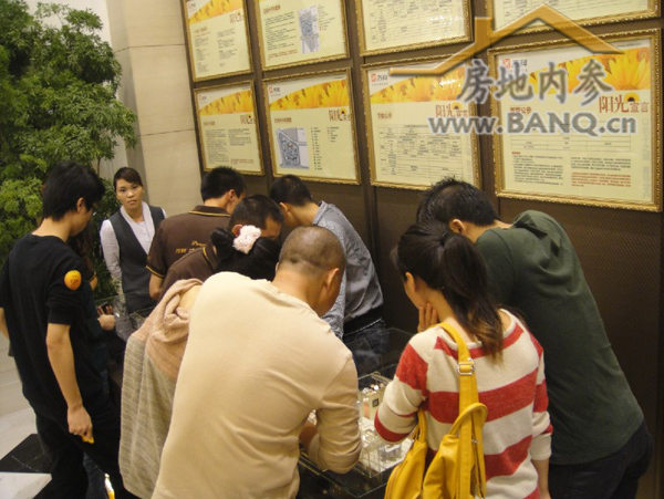 11月19日,万科·翡丽郡营销中心对VIP客户预约开放,当天上午09:30-13:30,房地内参www.BANQ.cn专业部成员专程前往该项目营销中心进行观摩。抵达现场的时候,营销中心外面的广场已经排起了长龙,外面的新沙路更是频繁出现塞车现象,营销中心内外人潮涌动,几乎感受不到“冬天”的气氛。
