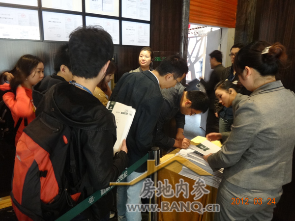 而除此以外,下午2时左右,项目还陆续迎来了3拨搜房团的看楼客,总共200批,人们热情高涨,现场显得十分火爆。若再加上周末一些散客看楼者,今日共有不少300批客户到场。可见项目人气之旺。