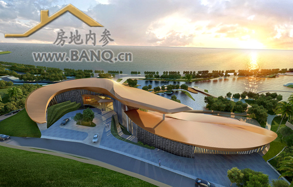 而且整个会所中心部分,采用了三连退层设计。逐层沿着楼梯环绕向上,登上一层就有比下一层更高的视界,更为开阔的景观层面;而15米的标高,再配以最佳的景观视角作为营销展示中心入口,无疑,建成后,会所将可尽享湾区内的第一海景感受,成为区域内的地标性建筑!