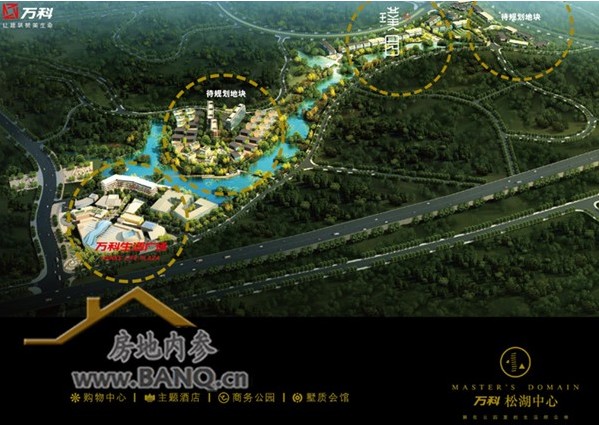 而万科•松湖中心首创公园生活综合体,位于松山湖核心居住区,占地面积9.7万㎡,总共分4期开发。项目沿着3.5万㎡的沟谷湿地公园水系修建,产品包括双拼、联排以及3万平米大型商业综合体。多类型产品与稀缺生态环境相结合,形成一个创新的公园生活综合体。