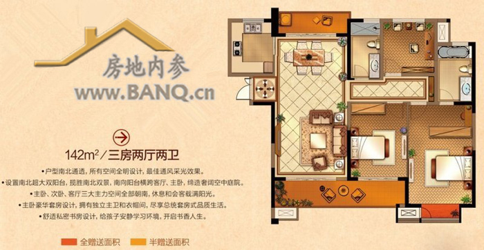 142㎡三房两厅两卫