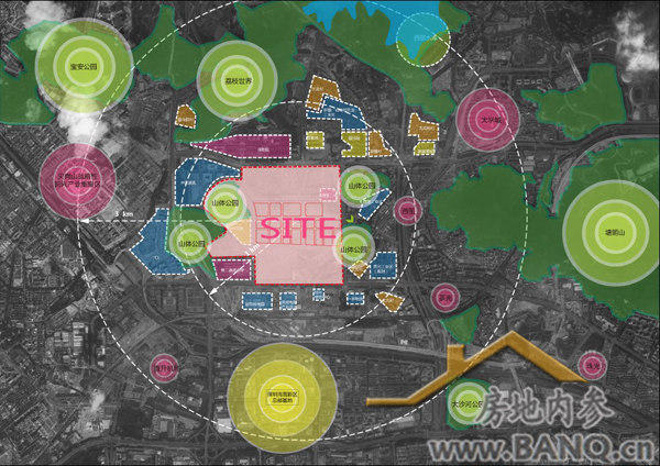 随着生活水平和经济水平的提高,安逸舒适的居住及商务环境越来越受到人们的重视,并且有更多的要求和期望。根据规划,项目构建“两横三纵”5条重要的通风及景观廊道,“两横”连通4个山体公园(石鼓公园等),东边有大沙河,北边1.5公里处是铁岗水库、3公里处是西沥水库,四周又有塘朗山公园、松坪山公园和大沙河公园环绕等,整体构成了复合型自然生态体系,彻底保障项目处在生态绿肺之中。
