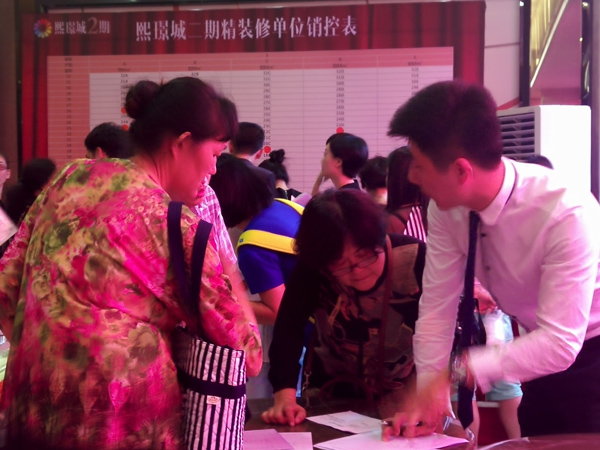小编9点到达开盘现场,不少客户还赶来签到进场,现场已有两百名左右客户坐等开盘,9点20分左右,近三百名客户约160批客户挤满了等候区。进入选房区则以签到顺序为主,先到先入,每次进入2批认筹客户。以现场客户情况来看,基本上以家庭型自住为主,解筹诚意度极高。