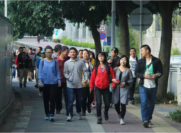 初冬也难挡驴友们的热情,此次活动十分火爆,报名人数远远超过预计人数。活动开始前一小时,第一集合点卓越城已经人潮拥挤,热情高涨。但由于现场聚集人数太多,临时决定先行疏散人群,让先到的驴友们直接沿绿道出发享受徒步之旅。