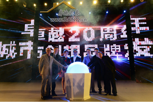 随着深圳卫视主持人王海东宣布“卓越集团深圳区域商办销售破百亿暨卓越20年城市创想品牌发布“仪式正式开启,卓越集团董事长李华、总裁李晓平、联席执行总裁王卫锋及众领导纷纷上台,在一片热烈的掌声中按动光球正式启动,大屏幕上所有的业主企业、社会各界合作方代表logo依次汇聚成相应的百亿及卓越20年城市创想字样,寓意合作共赢,感恩相伴。