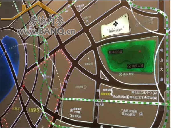 就生活综合配套而言,以前海东岸为中心的5公里半径范围,即可以享受到6大中心基地的辐射拉动效应,占据了深圳最精华区域的75%;3公里范围享受到前海\南山片区最成熟、最具民生稀缺价值的综合生活配套;1公里范围则享受到最稀缺的公园、绿轴景观,为中山公园住区的生活空间带来了最好的生活价值点。