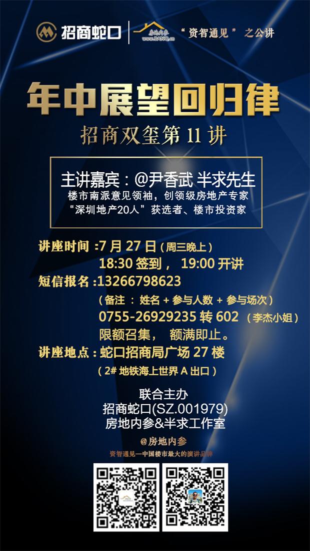 了解这个定律,就可以提前把握最大的资产品种、也是最大的财富载体---房地产在新阶段中的表现,从而避免误判、助益与此生最大的资产决策。介于此,招商蛇口(SZ.001979)决定赞助@房地内参 旗下的中国楼市第一演讲品牌“资智通见”的第545场,在@海上世界双玺 项目举办《上半年总结暨下半年展望:详解楼市加速回归定律》的主题讲座。