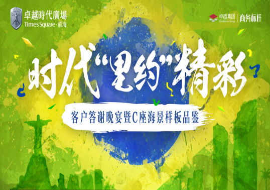 8月6日,前海·卓越时代广场客户答谢宴暨C座海景样板品鉴,即将于项目C座大堂盛大举行,预计将接近200名新老业主盛装前来,欢聚一堂,共享巴西特色美食,共鉴C座新品270°无阻挡海景办公空间。