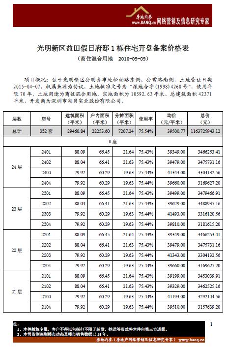 今天,本司发布光明新区益田假日府邸1 栋住宅开盘备案价格表的节录,未来遇有新盘价格表,本司都将发布节录,供大家参考: